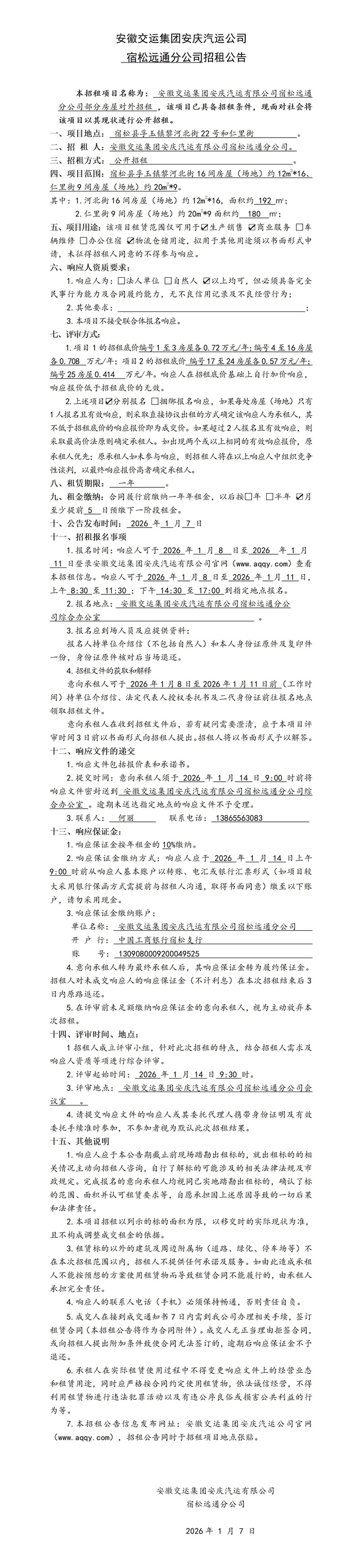 宿松遠(yuǎn)通分公司部分房屋對(duì)外招租