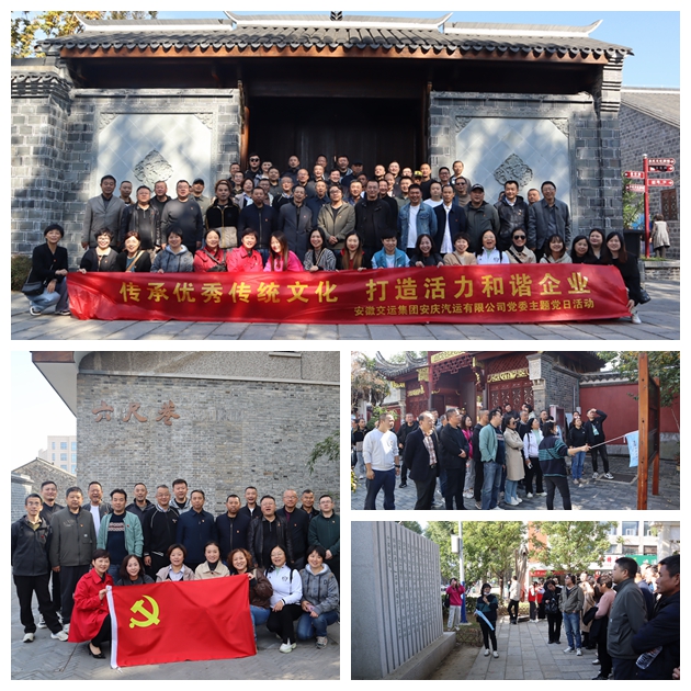 為深入貫徹習(xí)近平總書記考察安徽時的重要講話精神,進一步弘揚中華優(yōu)秀傳統(tǒng)文化,加強精神文明建設(shè),提升黨員干部的崇德尚禮品質(zhì),安慶公司黨委于11月7日至8日,精心策劃并組織了以“傳承文化精髓,打造和諧企業(yè)新篇章”為主題的黨日活動。此次活動由公司黨委主導(dǎo),桐城分公司黨支部具體承辦,市客運分公司黨支部積極參與協(xié)辦,實現(xiàn)了全司黨員干部的廣泛參與。